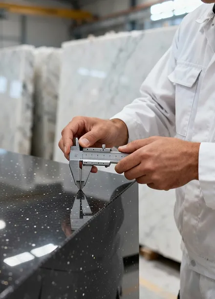 At Regatta Granites India, we pay closer attention to all types of defects found in granite stone like fissures, broken edges, chipped edges, swirl marks, repairs, etc. From doing size checks to surface inspection, we touch every aspect of stone quality during our quality control procedure. View quality control