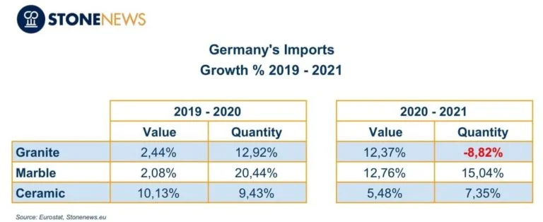 The table depicts the increasing trend of German imports since the pandemic onset. In addition, due to increased imports from Turkey and Italy, the quantity of processed marble has increased significantly.