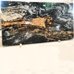 This black granite with gold and ivory veins stands out against the gloomy background. The Indian Fusion Gold Granite offers a dash of sophistication and elegance. The granite slab looks distinctive and appealing because of the polished granite’s rich complementation of the smooth surface’s shine.