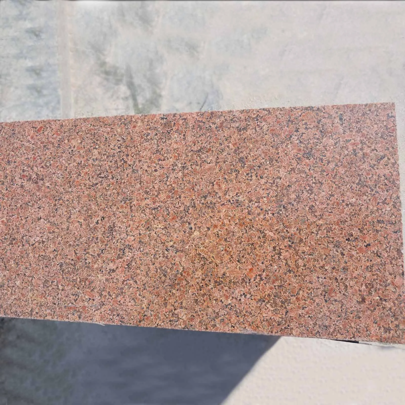 Quarried in North India, this granite has a striking orange color with red, light orange, and sometimes, grey, green, and black speckles appearing on its surface.